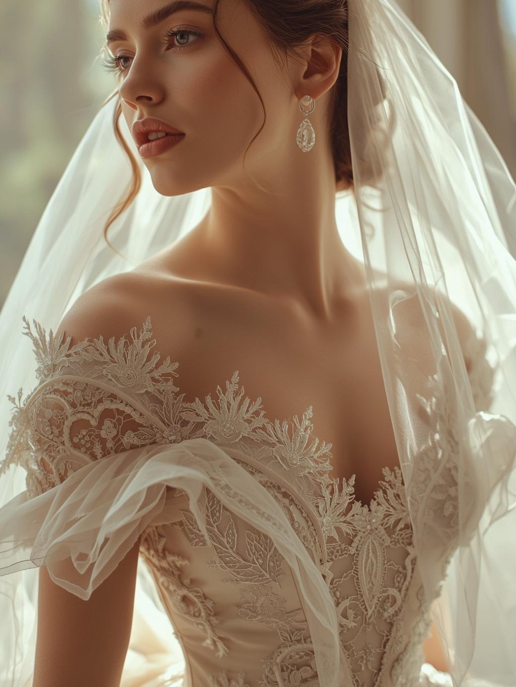 O Tule Bordado é um dos Tecidos mais tradicionais e desejados pelas Noivas. Leve e delicado, permite bordados sofisticados com fios acetinados, Aplicações florais e Pedrarias.
